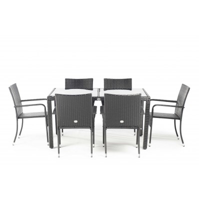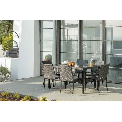 El modelo Formentera es un precioso comedor de exterior ideal para pasar momentos al aire libre en buena compañía. Se trata de un moderno comedor de exterior perfecto para tu balcón, jardín o terraza, compuesto por 6 sillas individuales y apilables y 1 mesa alta de comedor, por lo que está diseñado para alojar a 6 personas.