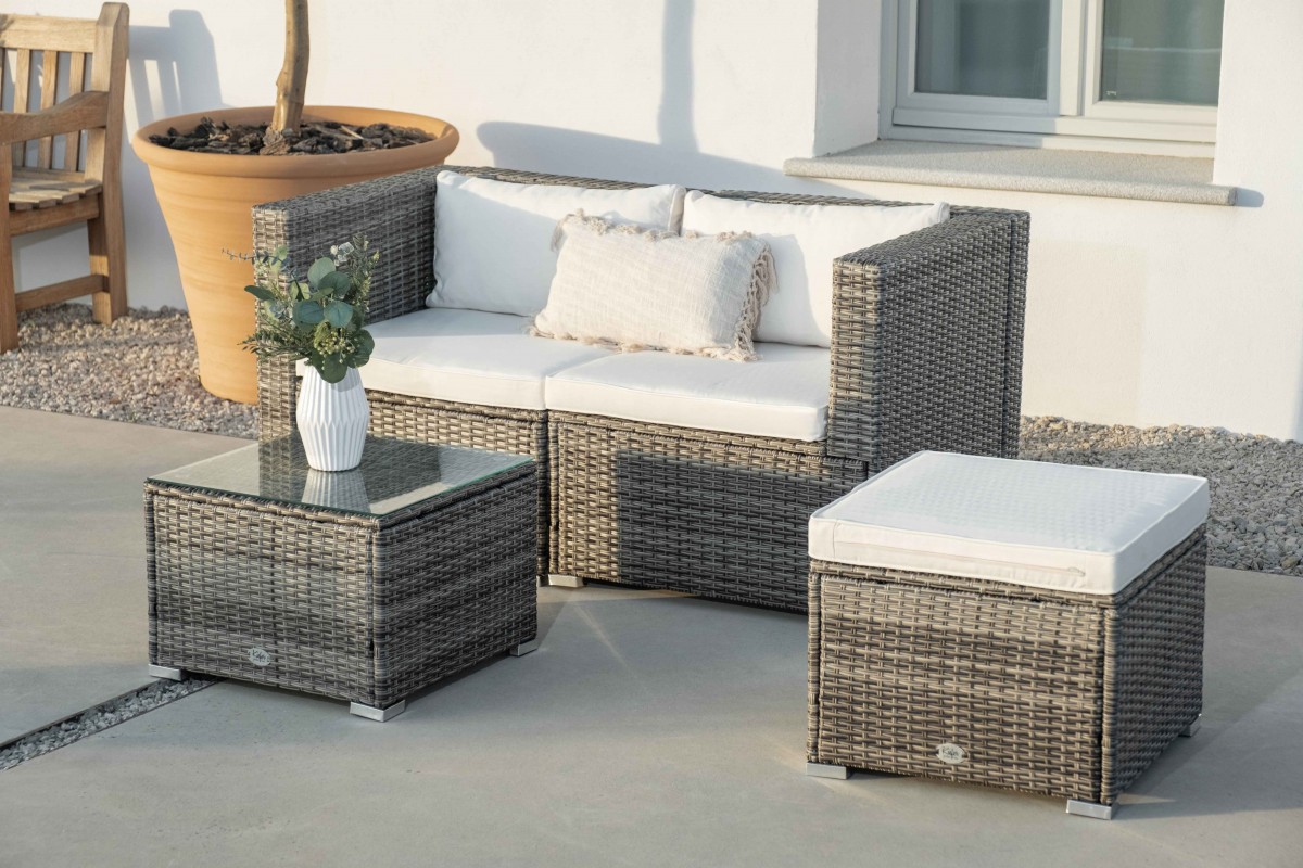 En esta página encontrarás una selección de muebles de jardín de alta calidad. El ratán sintético y el acero inoxidable ofrecen una gran durabilidad y proporcionan una apariencia elegante a tu terraza exterior. Encuentra al mejor precio el conjunto de sofá que se adapta a tu espacio. Te lo enviamos de forma inmediata en un plazo de 24 horas para que puedas disfrutarlo cuanto antes.