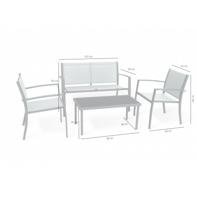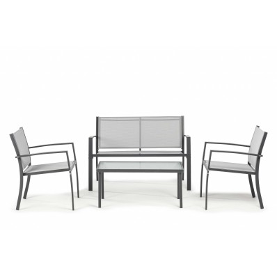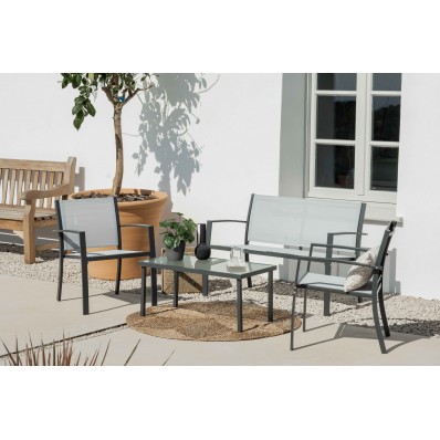El modelo Cancún set exterior es un cómodo conjunto de muebles de exterior ideal para disfrutar del buen tiempo. Se trata de un conjunto de muebles de exterior perfecto para tu balcón, jardín o terraza, compuesto por 2 sillones individuales, 1 sofá doble y 1 mesa, por lo que está diseñado para alojar a 4 personas.