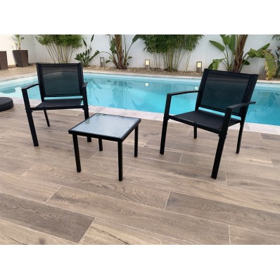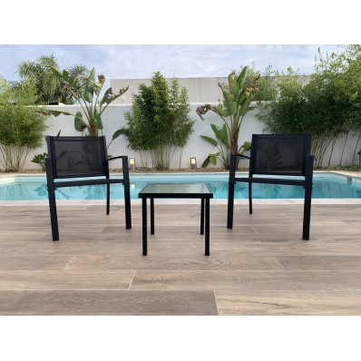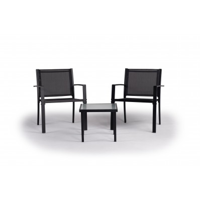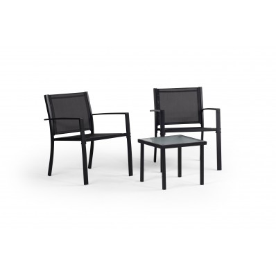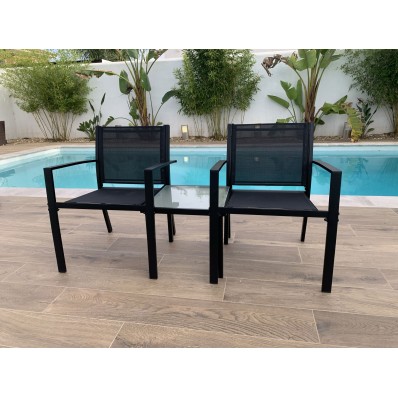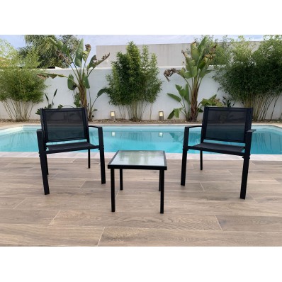 Conjunto de textileno negro compuesto por 2 sillones y mesa