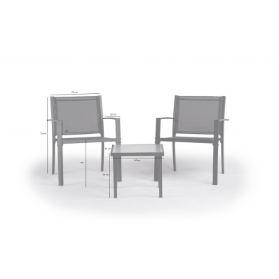 El conjunto de jardín Monterrey es un precioso set de muebles de exterior ideal para pasar momentos al aire libre en buena compañía. Se trata de un moderno conjunto de muebles de jardín perfecto para tu balcón, jardín o terraza, compuesto por 2 sillones individuales y 1 mesa de centro, por lo que está diseñado para alojar a 2 personas.