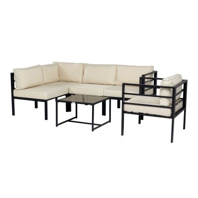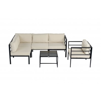 El modelo Madrid es un precioso set de muebles de exterior de calidad premium ideal para pasar momentos al aire libre en buena compañía. Se trata de un moderno conjunto de muebles de exterior perfecto para tu balcón, jardín o terraza, compuesto por 1 sofá modular formado por 2 módulos centrales y 2 módulos esquina, 1 sillón individual y 1 mesa baja de centro, por lo que está diseñado para alojar a 5 personas.