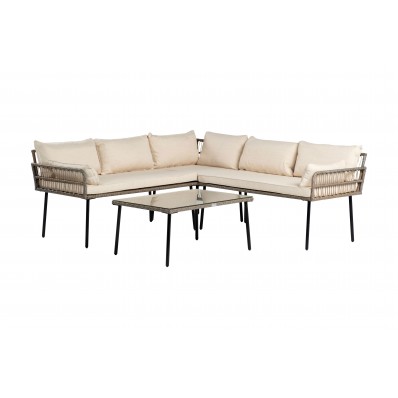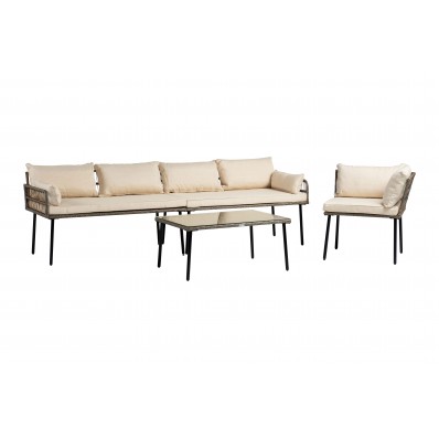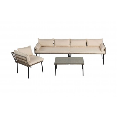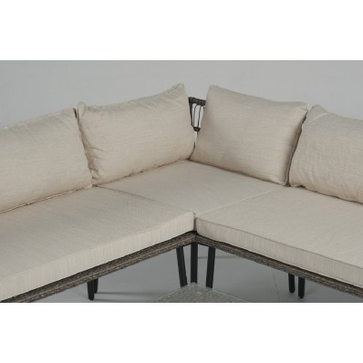 El modelo Palermo es un precioso set modular de muebles de exterior ideal para pasar momentos al aire libre en buena sillón . Se trata de un moderno conjunto modular de muebles de exterior perfecto para tu balcón, jardín o terraza, compuesto por 2 módulos sofá doble , 1 módulo esquinera y 1 mesa de centro, por lo que está diseñado para alojar a 5 personas.