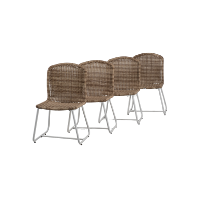 Las sillas tienen una estructura de acero blanco y ratán sintético de alta calidad imitando a ratán natural.