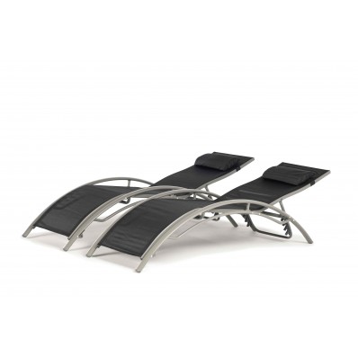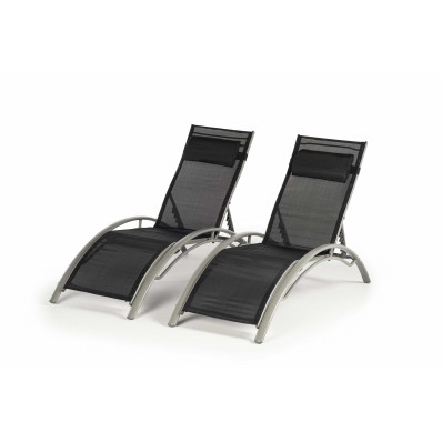 Pack de 2 tumbonas de aluminio y textileno con diferentes posiciones ajustables.
